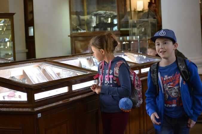 Во время этой экскурсии ребята познакомятся с многочисленными выставками Музея, где представлены экспонаты из разных уголков нашего огромного мира. Вам покажут минералы, добытые на знаменитых месторождениях пяти континентов: алмазы Африки, бразильские аметисты, афганский лазурит, китайская киноварь и многое другое. Сотрудники Музея расскажут о месторождениях, известных с античности и открытых в последние десятилетия. Вам покажут уникальные находки природных кристаллов и разнообразные срастания минералов. Кроме того, вы узнаете множество занимательных фактов, например, почему минерал пирит называют "золотом дураков", а минерал арсенопирит - "отвергающим кирку". Экскурсия будет полезной при изучении курса географии.
