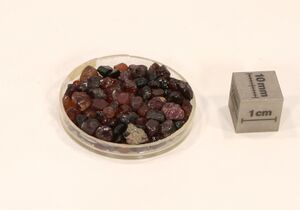 Более распространенные породы ультрабазитового состава – разнообразные перидотиты и пироксениты – содержат оливин (форстерит и железистый форстерит), гранат – пироп и альмандин-пироп, часто Cr-содержащий, ромбо- (энстатит) и клинопироксены (омфацит, диопсид, часто Cr-содержащие), шпинели (Cr- и Fe-содержащие), а также рудные минералы: рутил, ильменит, пирротин, пентландит, пирит, джерфишерит. Особое место среди редких минералов мантийных пород занимает алмаз.
