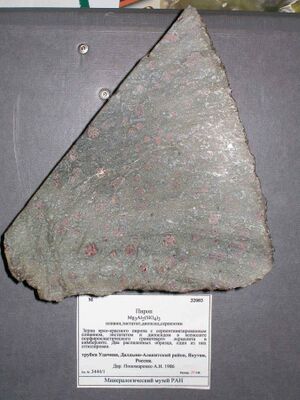 Экспозиция «Минералы верхней мантии» была создана в 2005 году Е.Л.Соколовой при участии консультантов профессора МГУ