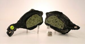 Вещество верхней мантии представляет собой магматогенные породы базитового и, чаще, ультрабазитового составов. На выставке экспонируются образцы ксенолитов из кимберлитов, базальтов, а также образец вебстерита из рифтовой долины Срединно-океанического хребта Атлантики.