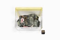 Найден: Расвумчорр, Хибины, Кольский п-ов, Россия.Минералы-спутники: Эвдиалит. Расположен на витрине exp61-3