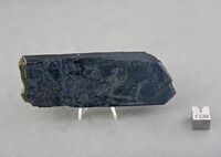 Коллекция Систематическая коллекция, №84852. Ярко-зеленый прозрачный спайный табл. выколок призматич. кристалла. 9.5х3.5 см.