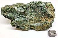 Коллекция Систематическая коллекция, №85740. Зеленый 8 см деформированный плоско-призматический кристалл в массе лучистого актинолита. 10х6х5 см.