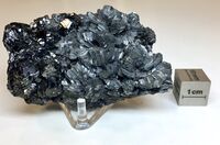 Коллекция Систематическая коллекция, №86157. Друзовая корка стально-серых расщепленных xls, пластинчатых со сфалеритом. 6.5х4.5 см.