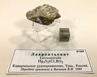 Найден: Кадырэльское рудопроявление, Тува, Россия.Минералы-спутники: Гречищевит, Br-эглестонит, Br-каломель.