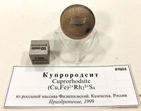 Найден: из россыпей массива Филипповский, Камчатка, Россия.Минералы-спутники: Изоферроплатина, Борнит.
