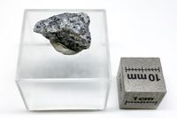 Коллекция Систематическая коллекция, №90517. Черные изометричные зерна размером до 1мм в фените. Длина экспоната 1.5 см.