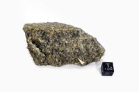 Коллекция Систематическая коллекция, №90980. Черные изометричные кристаллы размером до 1 мм на кристаллах кварца в кварцевом прожилке. Длина экспоната 8.5 см.