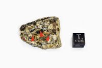 Коллекция Систематическая коллекция, №91315. Коричневые зерна бираита-(Ce) размером до 0,1см в срастании с темным грязно-зеленым тернебомитом-(Ce), c черными идиоморфными зернами ферриалланита-(Ce). В кальцит-арагонит-стронцианитовом карбонатите. Длина экспоната 4.5 см.Размер минерала 0.10 см.