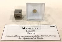 Коллекция Систематическая коллекция, №92043. Зерно миассита с изоферроплатиной и осмием в препарате для микрозонда. Документация на отдельном листе.
