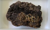 Коллекция Систематическая коллекция, №93459. Ярко-желтые агрегаты алюминокопиапита на лигните Длина экспоната 3.0 см.