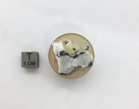 Коллекция Систематическая коллекция, №93494. Пласиковая запрессовка для микрозонда, содержащая образец с мегоитом. Голотип Длина экспоната 2.0 см.Размер минерала 0.01 см.