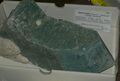 Коллекция Систематическая коллекция, №95531. Призматический зеленый кристалл амазонита, сдвойникованный по бавенскому закону с белым альбитом (клевеландитом) в основании. Размер: 30 х 8 х10 см Длина экспоната 30 см.