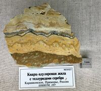Коллекция Месторождения, №31527. 491/м. Адуляр-кварцевые фестончато-полосчатые жилы с теллуридами серебра.