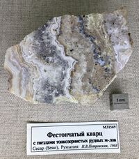 Коллекция Месторождения, №31569. РМ-58. Фестончатый кварц с гнездами тонкозернистых рудных минералов.