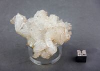 Коллекция Образования и превращения, №1558. Друза бесцветн. уплощенных по (010) и расщепленных по этой же плоскости кристаллов (от 0,5 до 2,5 см) Разм. 7,0 см. Длина экспоната 7 см.