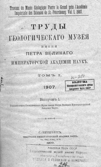 ТРУДЫ ГЕОЛОГИЧЕСКАГО МУ3ЕЯ ИМЕНИ ПЕТРА ВЕЛИКАГО ИМПЕРАТОРСКОЙ АКАДЕМIИ HAУКЪ,